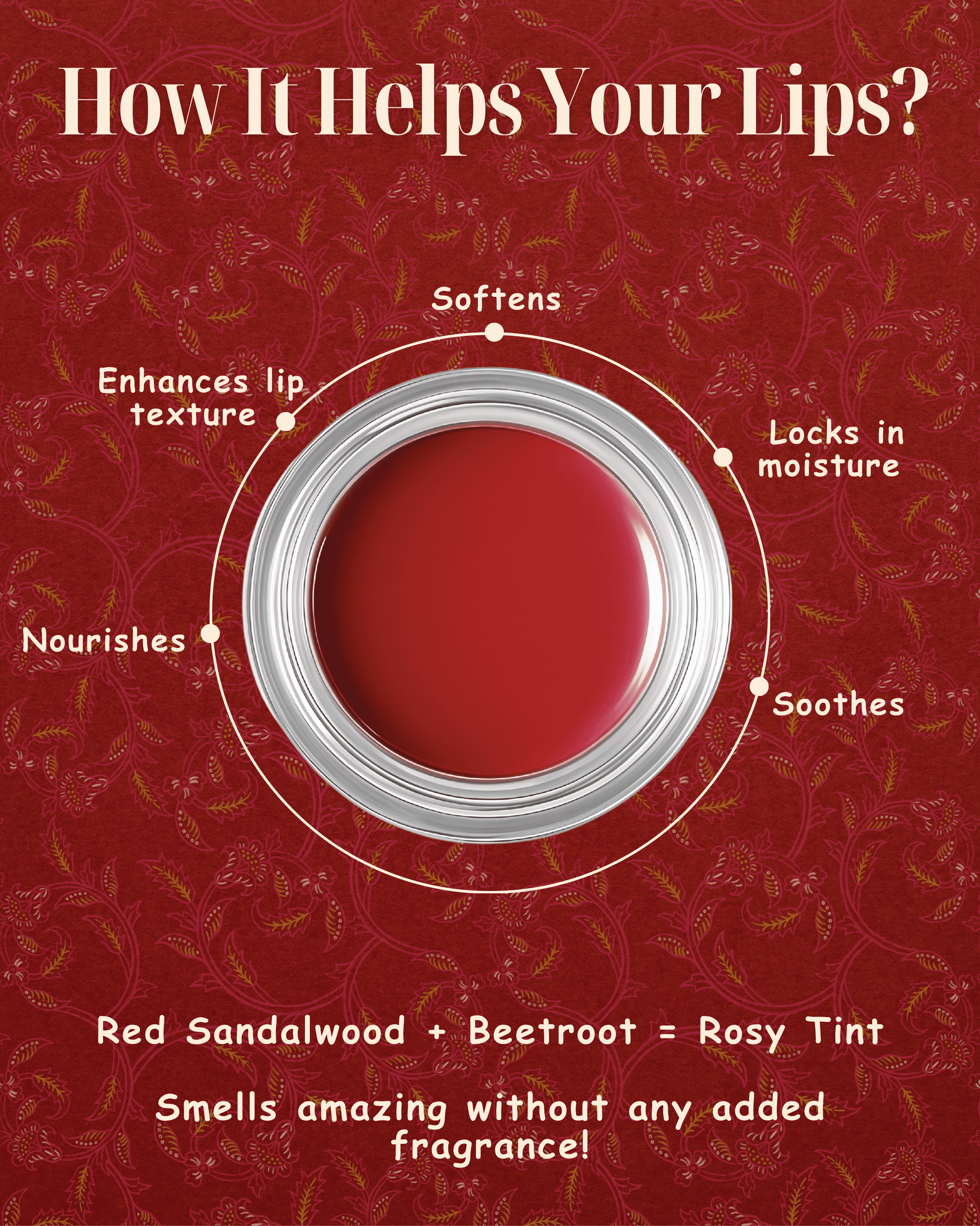 Kerala's Red Sandalwood to brighten and protect —This lip balm is Pure Ayurvedic Goodness in every swipe.