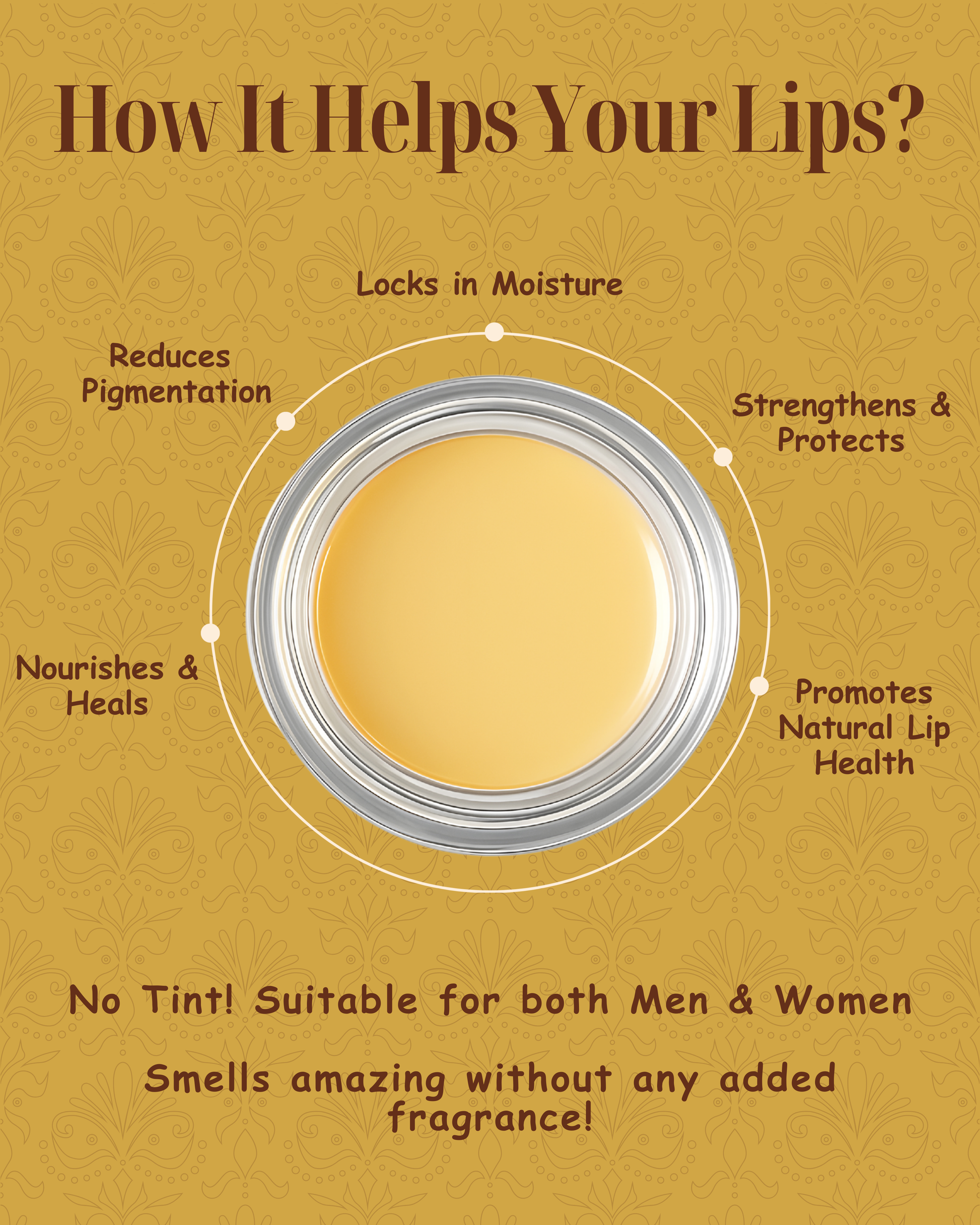 Together, this Ayurvedic blend rejuvenates your lips, making them naturally pink, hydrated, and healthy.